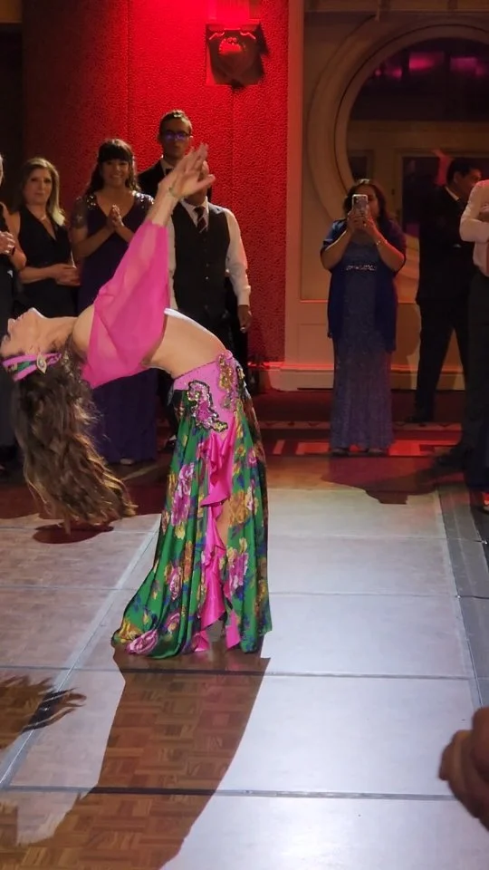 With thousands of shows under her belt, she can handle any situation. She is professional and easy to work with. Her rich understanding of the dance, its culture and music shine through. She is skilled in many styles of Middle Eastern dance as well as in the use of all the typical bellydancing props (finger cymbals / zil / sagat, veil, wings, stick / cane /assaya), and much more. She especially loves working with your musical requests to produce a unique show, perfect for your event. No matter what your background – Lebanese, Egyptian, Iraqi, Turkish, Greek, Indian, Afghani, or anything else – Rachel can create entertainment that’s sure to thrill your guests.